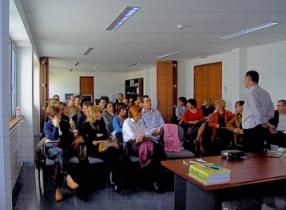La fecha definitiva para realizar los admitidos de Cantabria la prueba ECOE 2005 en Madrid, es la del domingo día 19 de Marzo, a las 11,30 horas. Serán 19 los candidatos admitidos de Cantabria para dicha prueba, tras la admisión a última hora de algúnos nuevos aspirantes. Todos ellos están convocados el mismo día y hora. Aunque debía haberse celebrado, como en ocasiones anteriores, a finales del pasado año, la convocatoria 2005 ha sufrido un importante retraso al dejar desierto el Ministerio el Concurso Público para su organización. Finalmente se ha adjudicado s Semfyc, habiendo llegado esta Sociedad a un acuerdo con SEMERGEN para su órganización conjunta en posteriores ocasiones. En la foto, uno de los Talleres ECOE que ha organizado SEMERGEN-Cantabria.